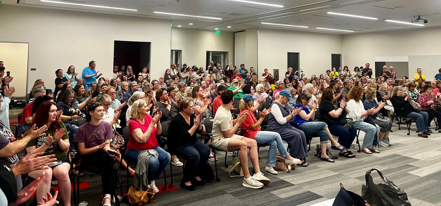 I spoke about the Missouri GOP overturning our will on abortion and earned sick time and a higher minimum wage and when I tell you the rage that seethed in that room at the mention of those things…it was palpable. The audience grew irritable and shook their heads and whispered to their neighbors.