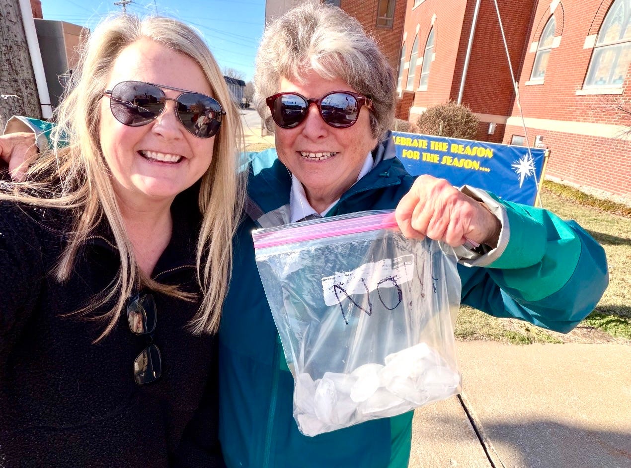 I heard someone yell my name, and I saw it was another friend from St Joseph. She is a retired professor from Missouri Western University. She said, “Jess! Come here. I want a picture of three former English teachers protesting.” I walked over for the photo with the two other teachers, and the woman who took our picture was a retired professor from Northwest Missouri State University.