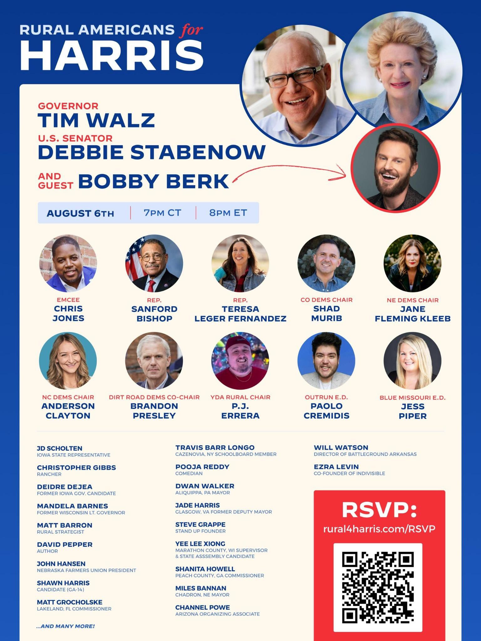 Here’s the fun part though: Gov Walz is speaking on a call tonight — Rural Americans for Harris. I started talking with a few rural organizers two weeks ago about setting up a call to mimic many of the others supporting our next President, Kamala Harris. We worked to get several rural folks and lawmakers on the call and Gov Walz agreed to speak last week. I’m crossing my fingers that he can still make it since he’s had some big news today.
